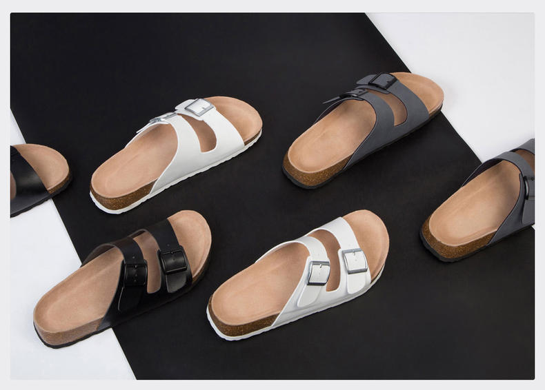One cloud软木底休闲凉拖外观依旧是简约造型,没有多余的图案设计,提供了白色、黑色、蓝色三种颜色可以选择,时尚百搭。